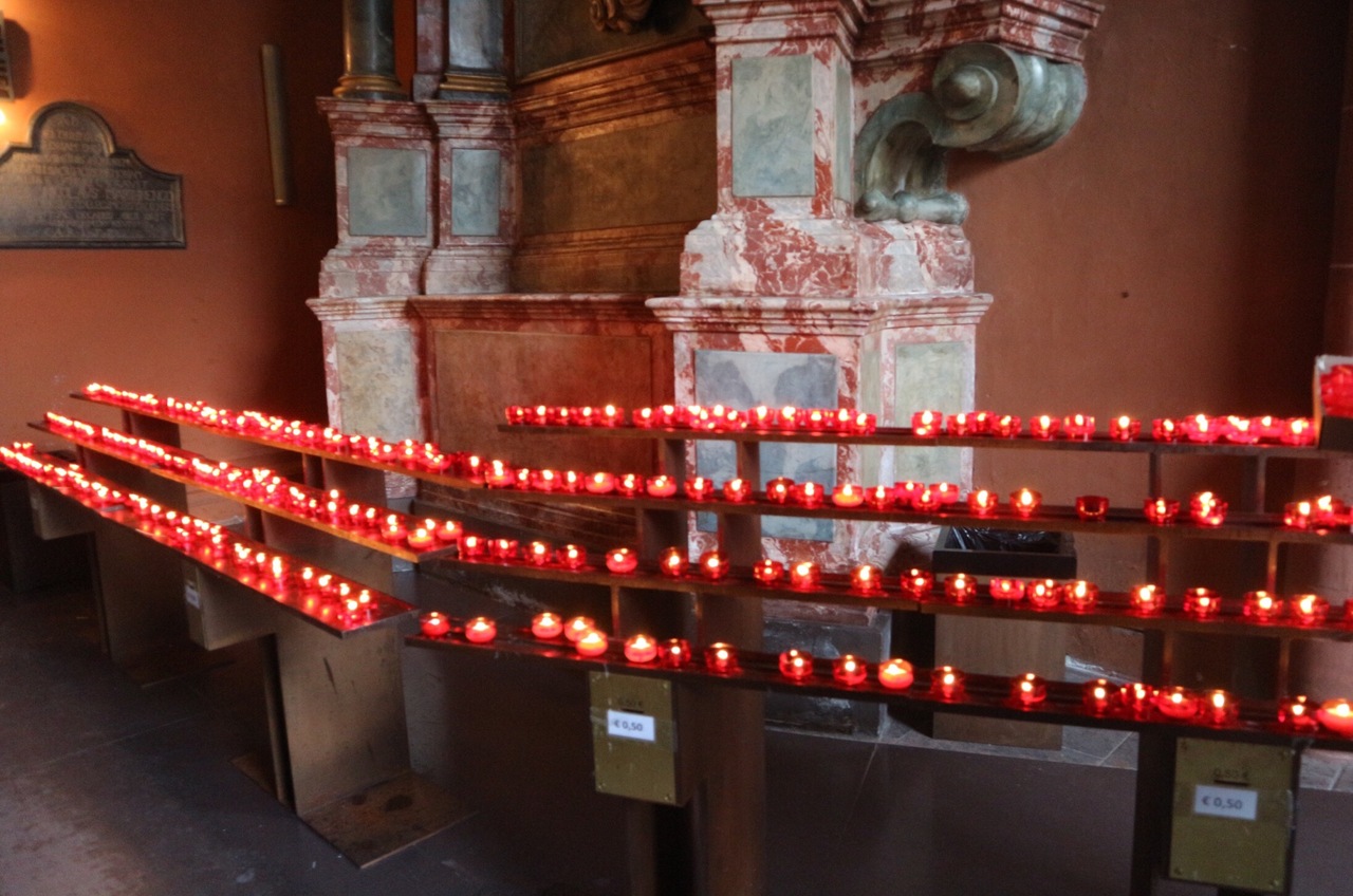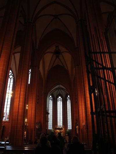 入ってすぐのところに赤いキャンドルがずらっと並んでいて、とても綺麗でした。左手側には中世っぽい服や飾りの展示があり、無料で楽しめました。大聖堂内はいたってシンプルでしたが(特にステンドグラスは地味目)、要所要所でドイツらしい重厚感のある造りが感じられてよかったです。レーマー広場からすぐですし、近くに雑貨屋や土産物屋が多いので、観光には便利です。