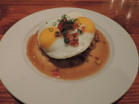 2013年4月にアラモアナショッピングセンター併設メイシーズ内のパイナップルルームにディナーで行きました。注文したのはロコモコが含まれているコース。サラダ、ロコモコ、デザートで一人あたり39ドルです。