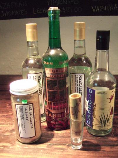 このお店の一番の特徴はリュウゼツランが原料「メスカル」というお酒が飲めること。昔はとてもメジャーだったのですが、時代と共に廃れてしまい、今では小規模メーカーが細々と生産しているのみ。流通量が極端に少なく「幻のお酒」となってしまったようです。