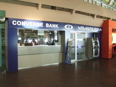 エレヴァン空港では出国の際にADM10000の出国税をCONVERSE BANK(写真)で支払い、レシートを提出して初めて搭乗券がもらえます。それにしても高っ(>_<)。
