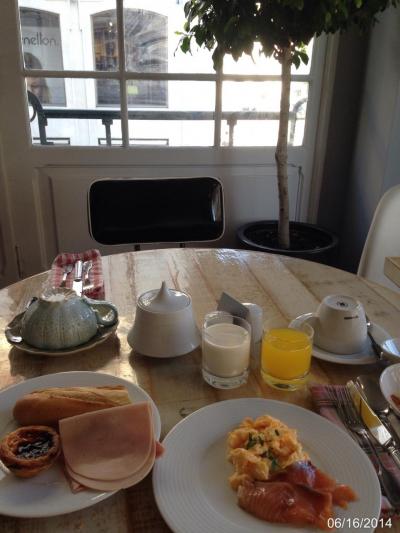 翌日の朝食は種類も豊富でおいしい。ポルトガルらしくエッグタルトなど菓子...
