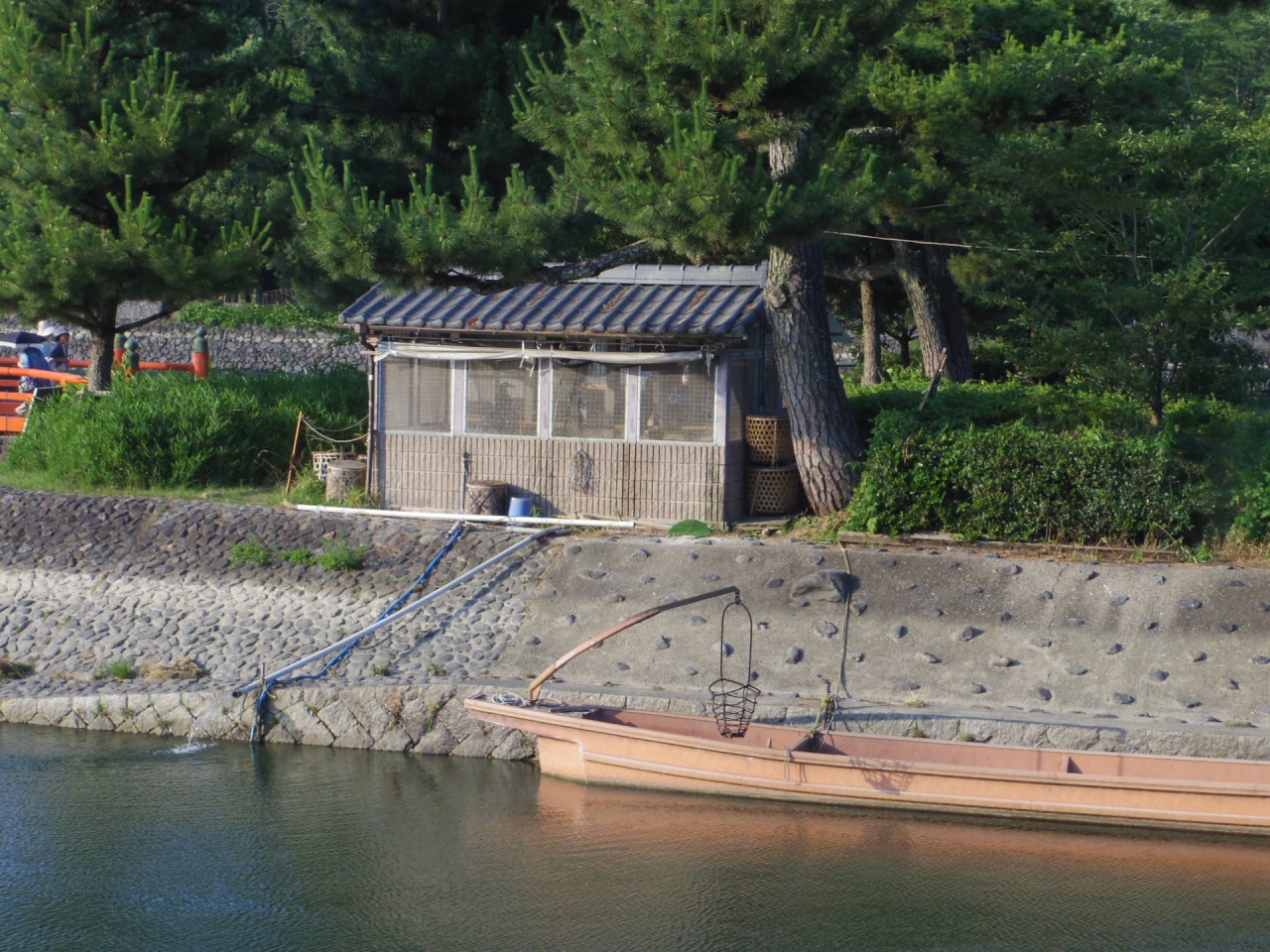 川沿いに遊歩道があり川の様子もよく見えますよ あれは屋形船を準備しております