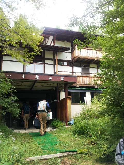 穂高山荘ではヘリ輸送の最中で 思わず記念撮影- 旅行時期