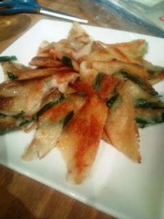 これが最高 豚チヂミ 親切に取りやすく切ってあります