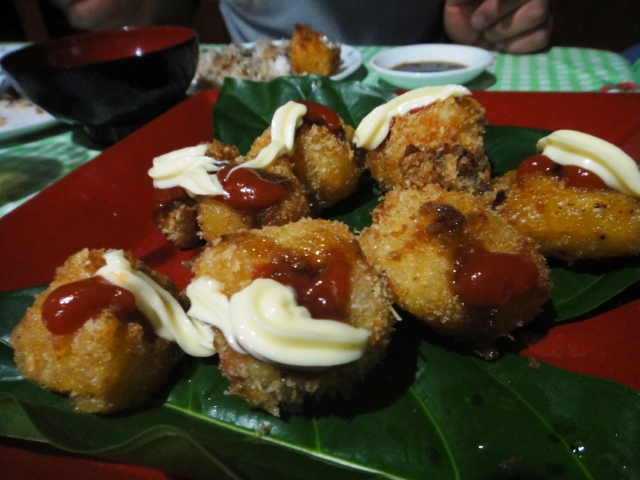 特にタロイモのコロッケやシャコ貝のお好み焼がお勧め