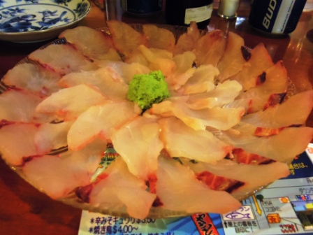 真中が今日釣ったハタで周りがバラフエですって 旨い もっと冷たいと