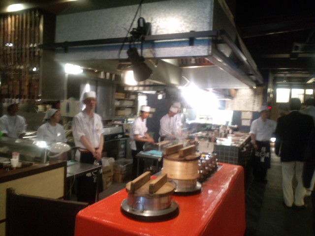 キッチンが上から見られてスタジアムのような雰囲気で職人さんの仕事が見え