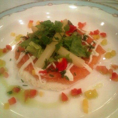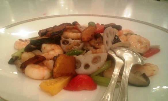 次は海老のサラダこの透明な野菜?が変わってます茸か海藻か?何だろう?