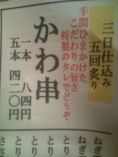 しかし もう一つの名物が かわ串です 三日かけて五回炙って