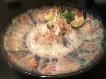 そろそろ熱燗で体も温まってきました ここで河豚刺し