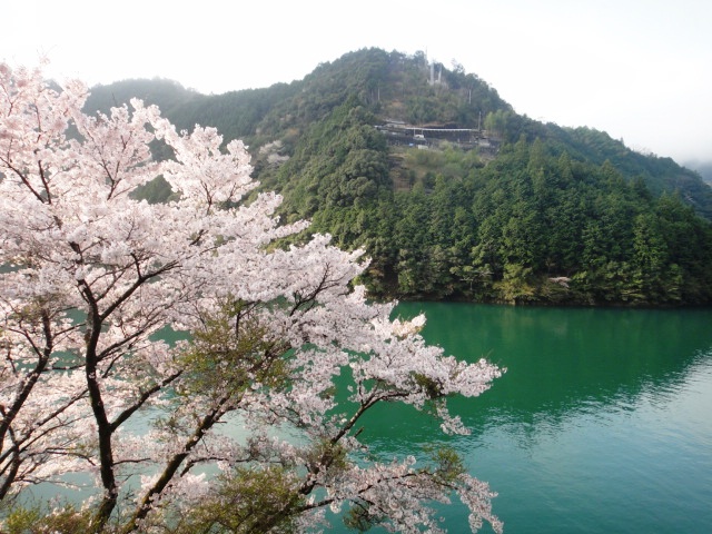 十津川はダム湖満開の桜が湖畔に移ってとても綺麗