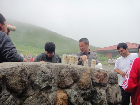 そこへ味噌をいれ葱等をさらに加え又石を入れ煮込みます