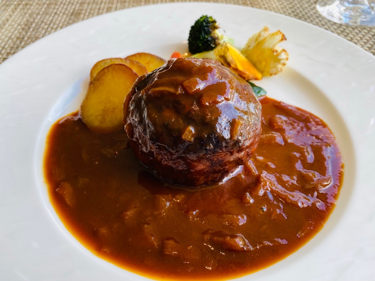 ハンバーグをいただきましたが、すごく美味しいハンバーグでした。