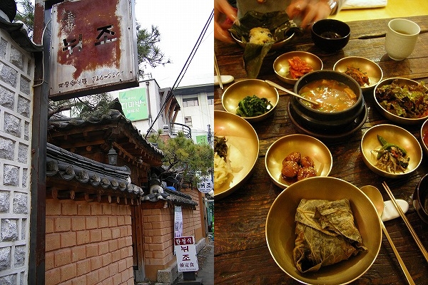 15000ウォンのランチのコースをいただきましたが、料理7品程が出た後に、ナムルなどのおかずがこれまた7、8品と熱々スープと蓮の葉に包まれたご飯、と盛りだくさんの内容でした。