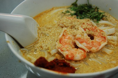 ラクサとは、マレー料理の1つで、ココナツミルクとチリの濃厚なスープの麺料理です。