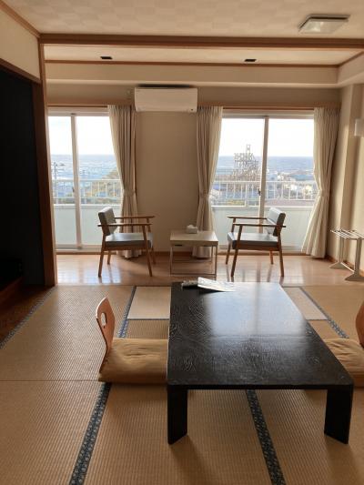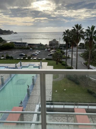 海の目の前で夕日が見られるホテルですが、あいにくのお天気で見ることができませんでした( ; ; )