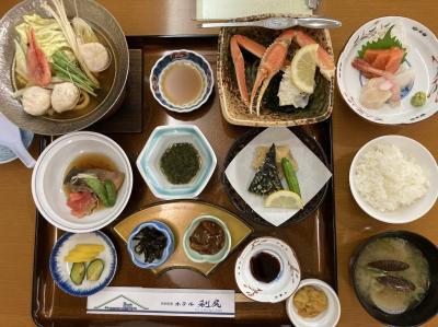 1日目の晩御飯は、ウニ、カニ、ホタテの豪華なごはん。