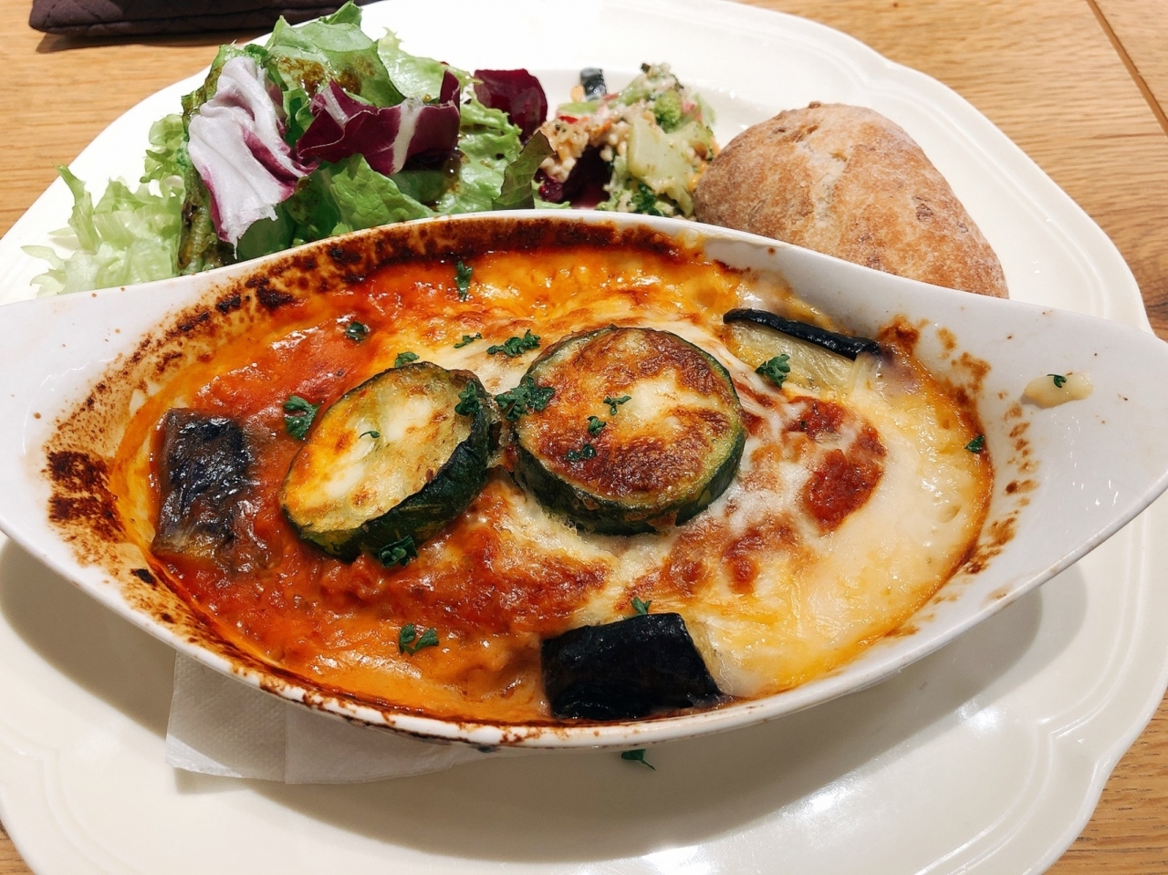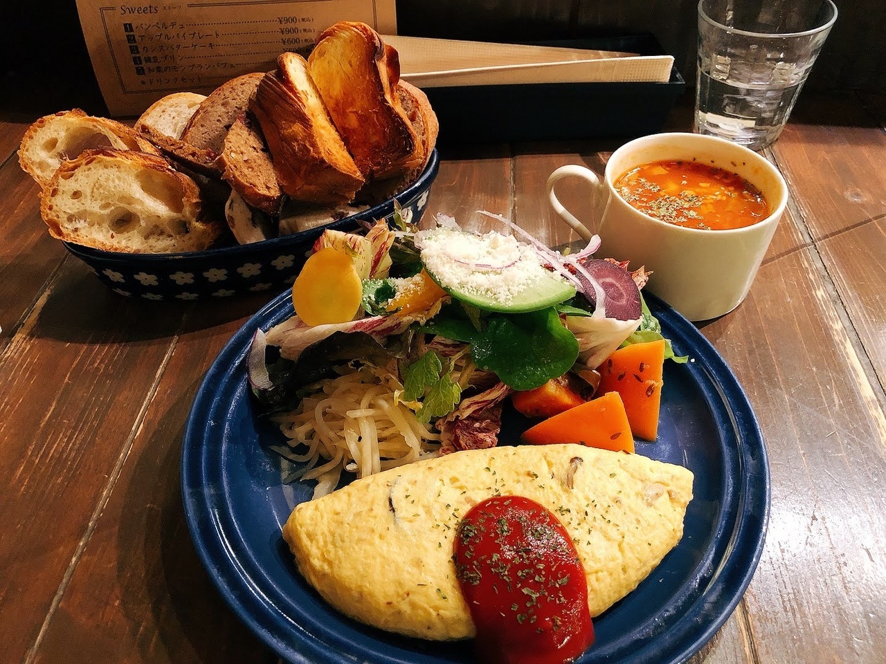 そして、とろとろオムレツとサラダがまたボリュームいっぱい。色々な野菜が使われていました!パルメザンチーズをお好みでかけてもらえます。