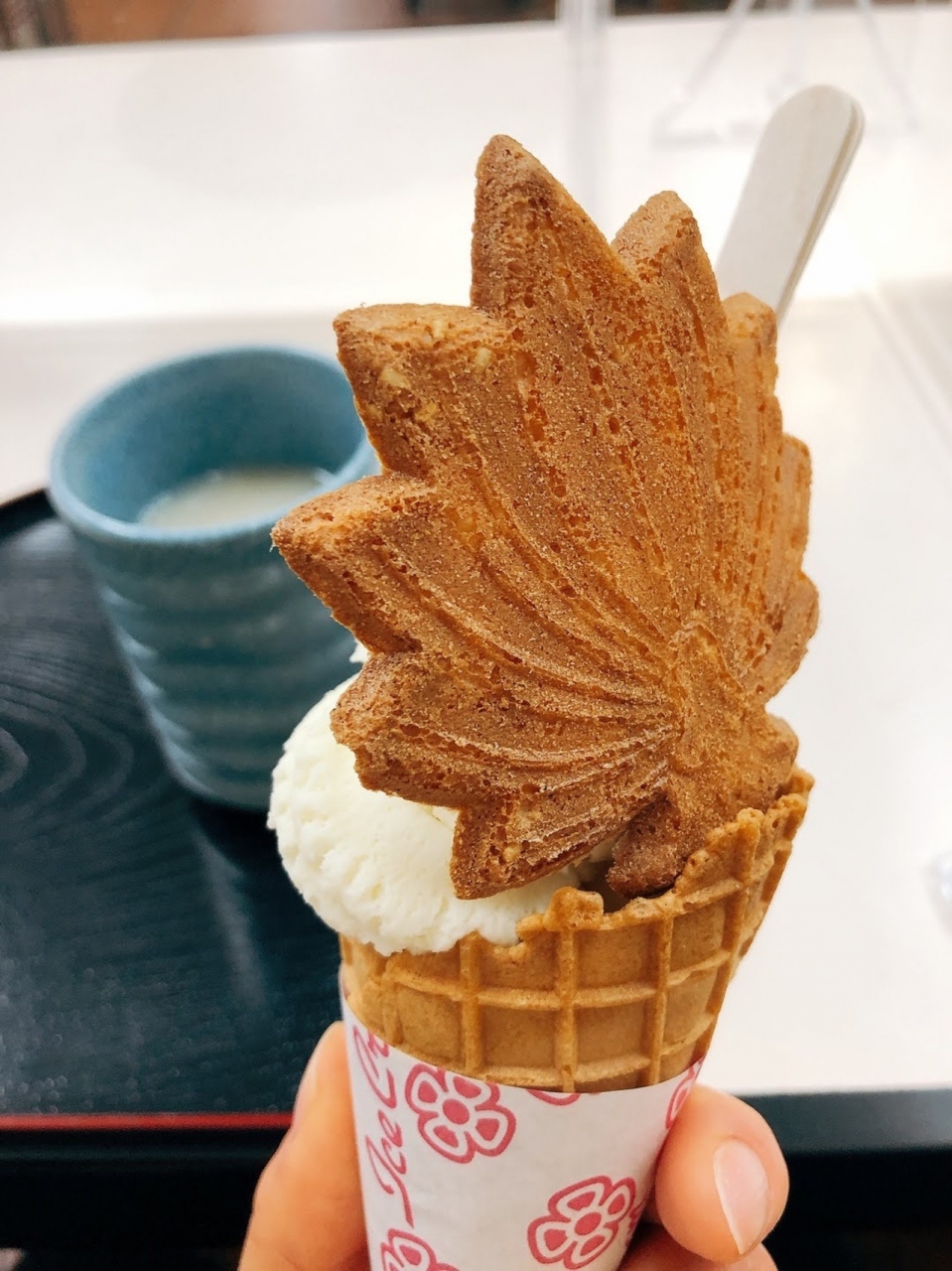 私は、甘酒と天狗煎餅ののった栗のアイスクリームを購入。