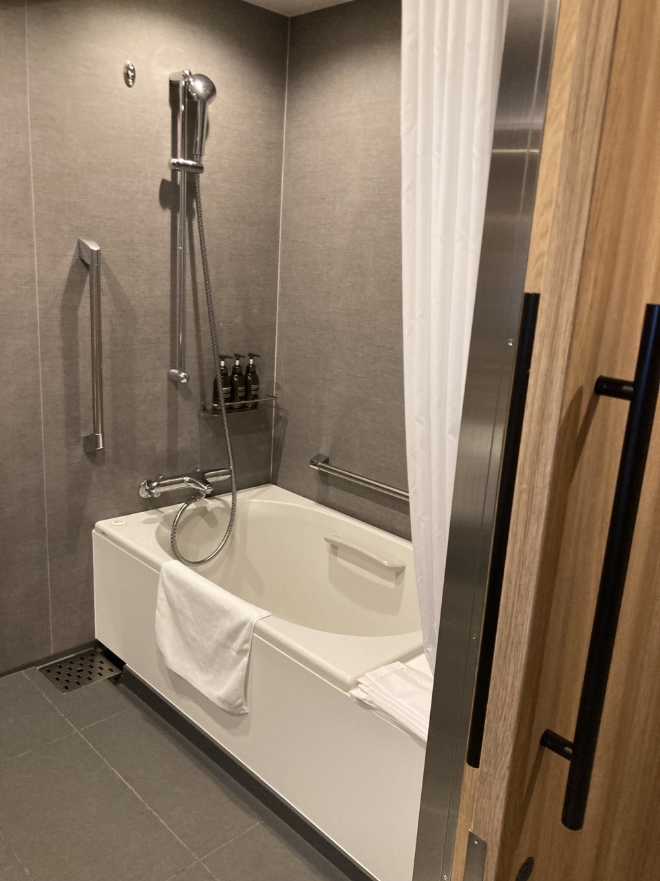 フロントだけでなくお部屋もバストイレが広く手摺も沢山ついています。