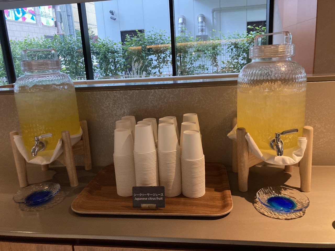 ウェルカムドリンクはフロントも前にあり、ひとり1杯で生ビールまであります。