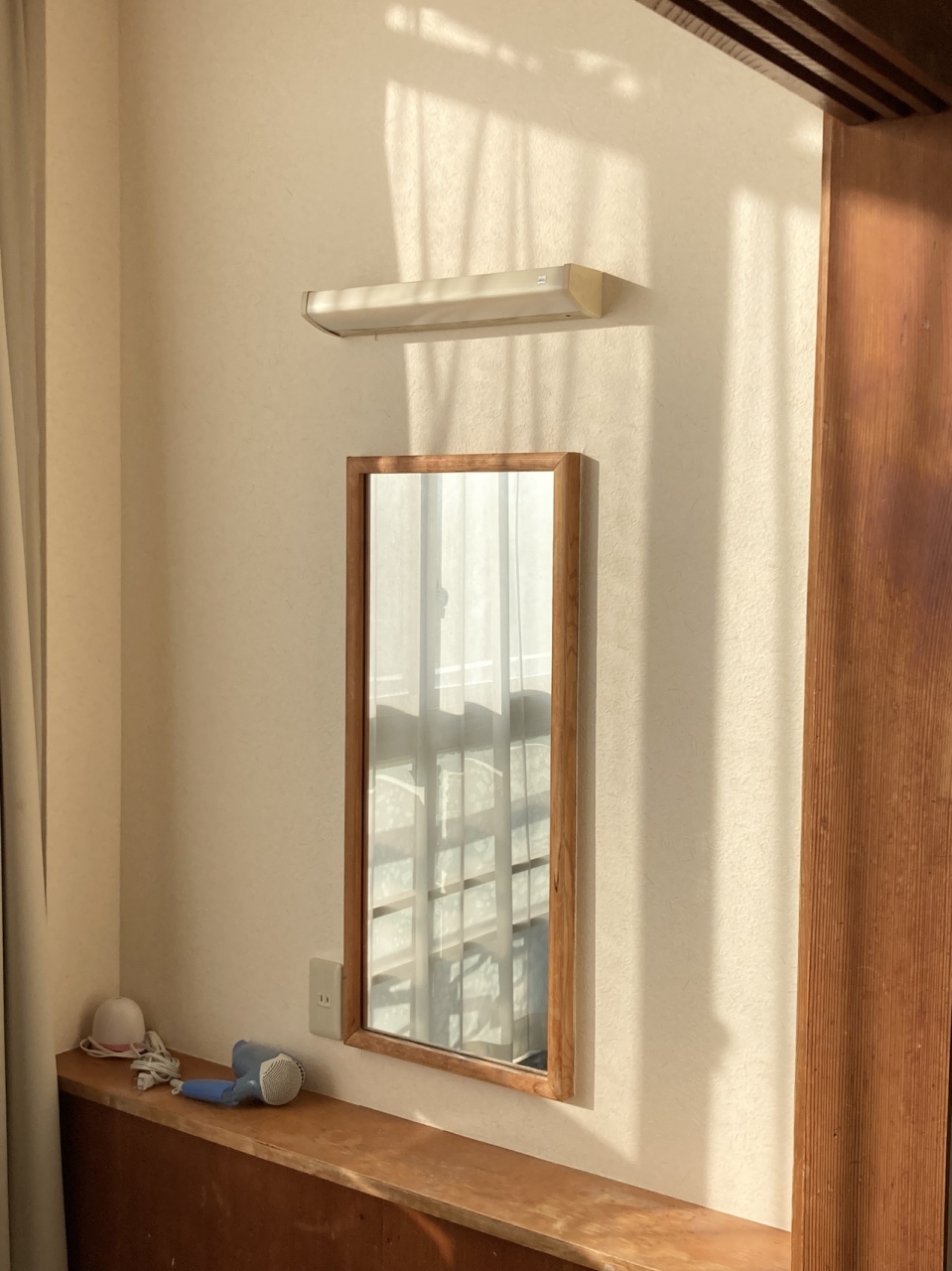お部屋のソファがある所にドライヤーと姿見があってメイクするのに便利!