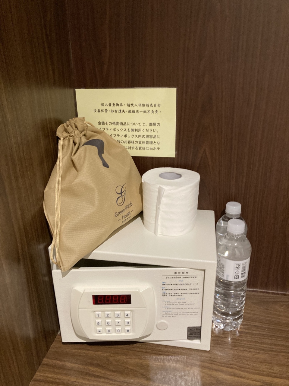 部屋には、お水のペットボトルがひとり1本ついています。