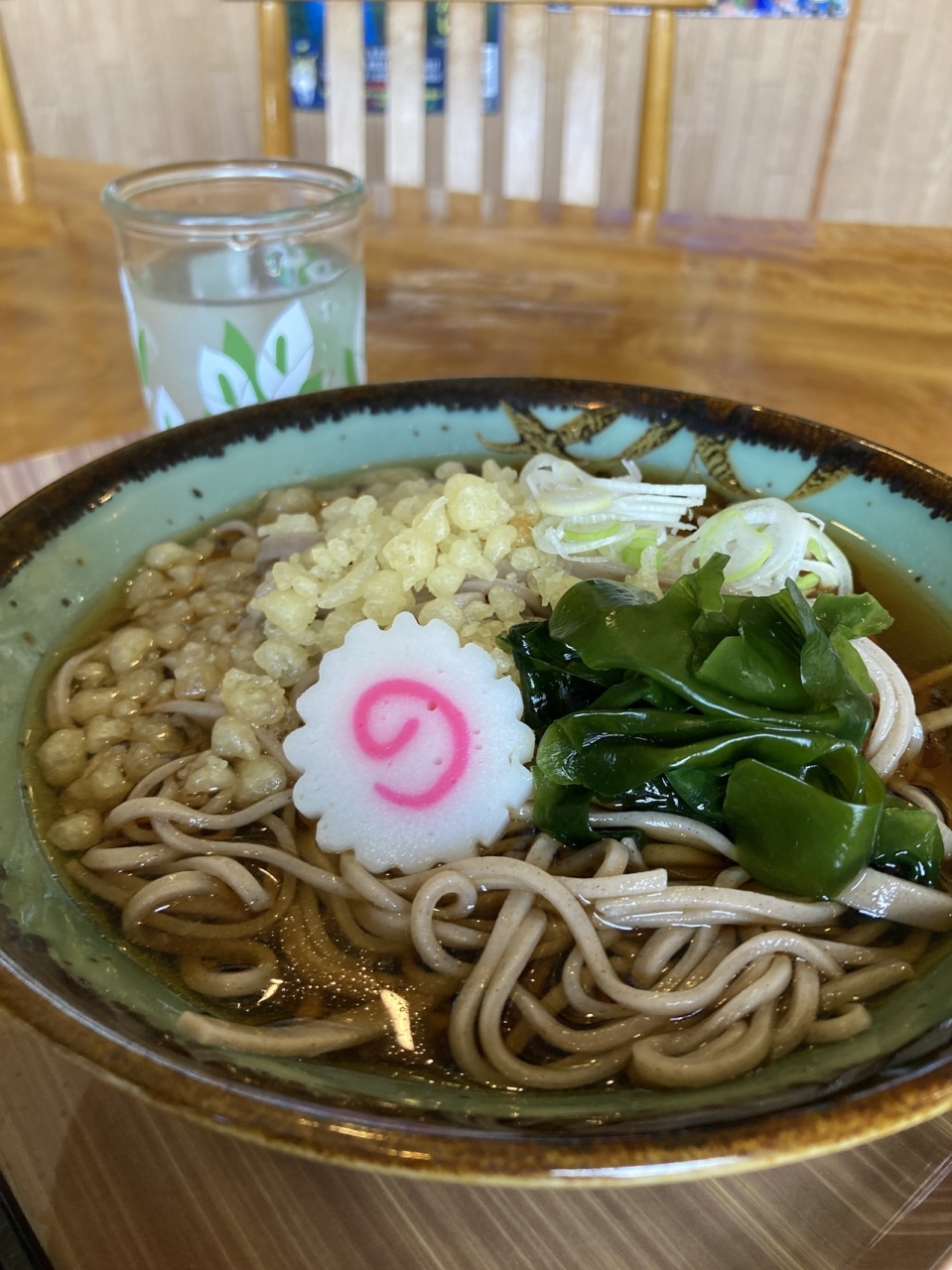 冷たいたぬきそばを注文。麺は手打ちなのか太さが色々で味があります。