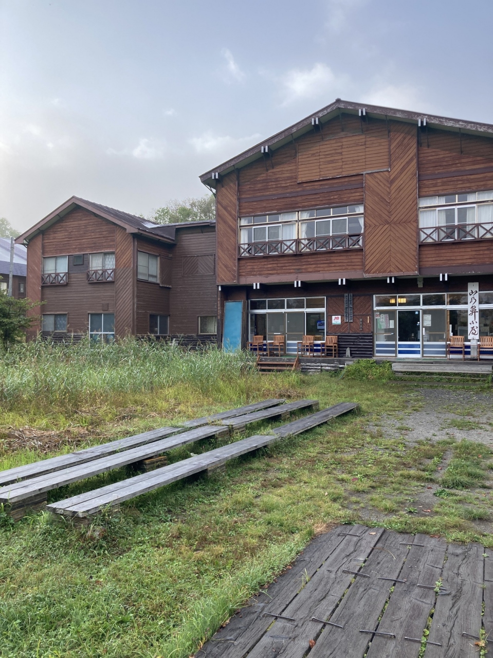 入口前には至仏山を眺めながら、ランチやお茶などもできるテラスがあります。