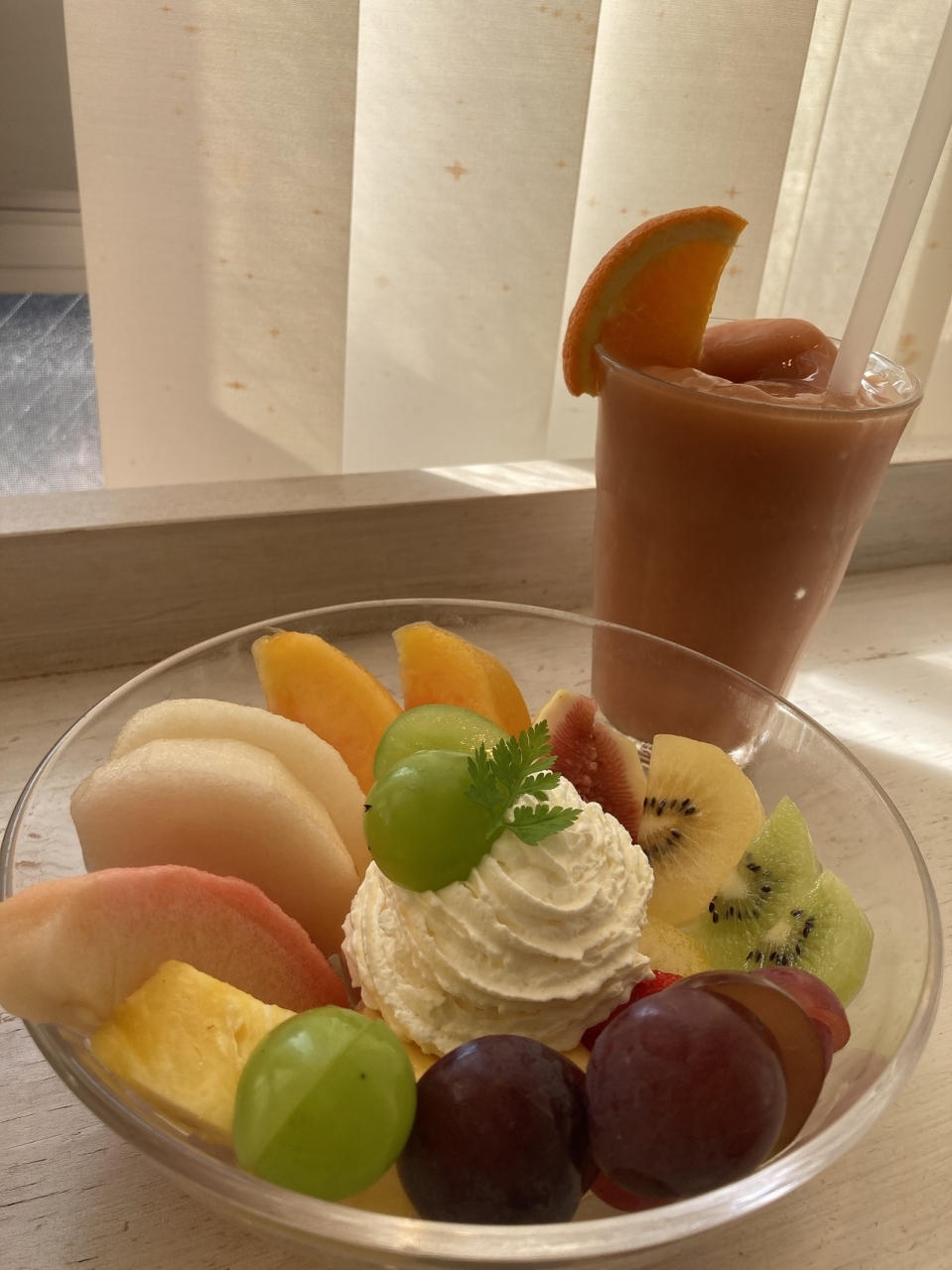 フルーツ屋さんのイートイン。ということでケーキも美味しそうだったけど、フルーツをたくさんいただきましま^ ^