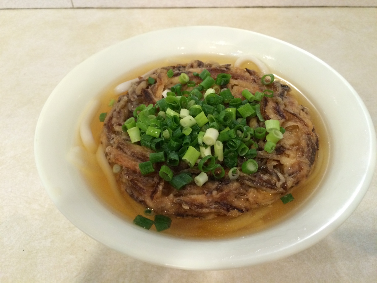 ちょっと塩分のきいた出汁に掻き揚げ天です。