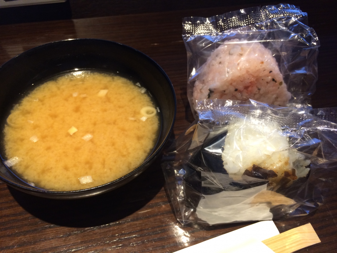 毎回2種類のおにぎりとお味噌汁があります。