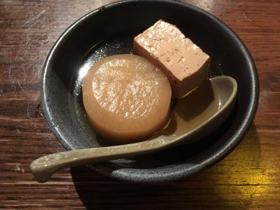 ハーフ&ハーフ、おでんは大根と焼き豆腐、ハムフライのお得なセット。