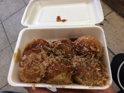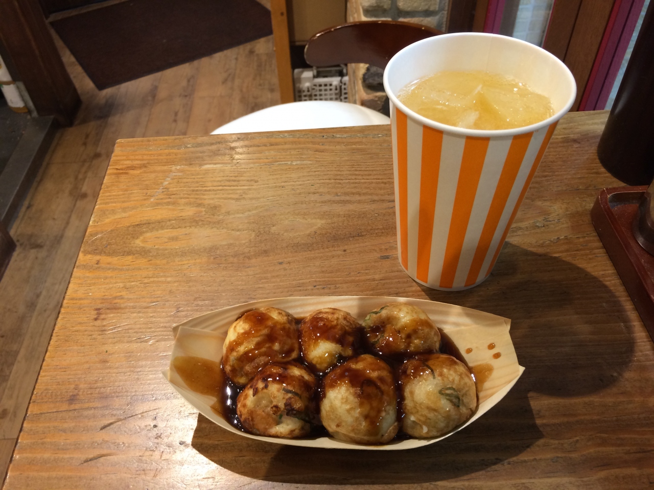 商店街の先のお店でたこ焼き買って、横の丸椅子に座って食べたら美味しかった。