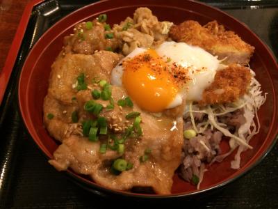 三種の豚料理の丼をいただきました。
