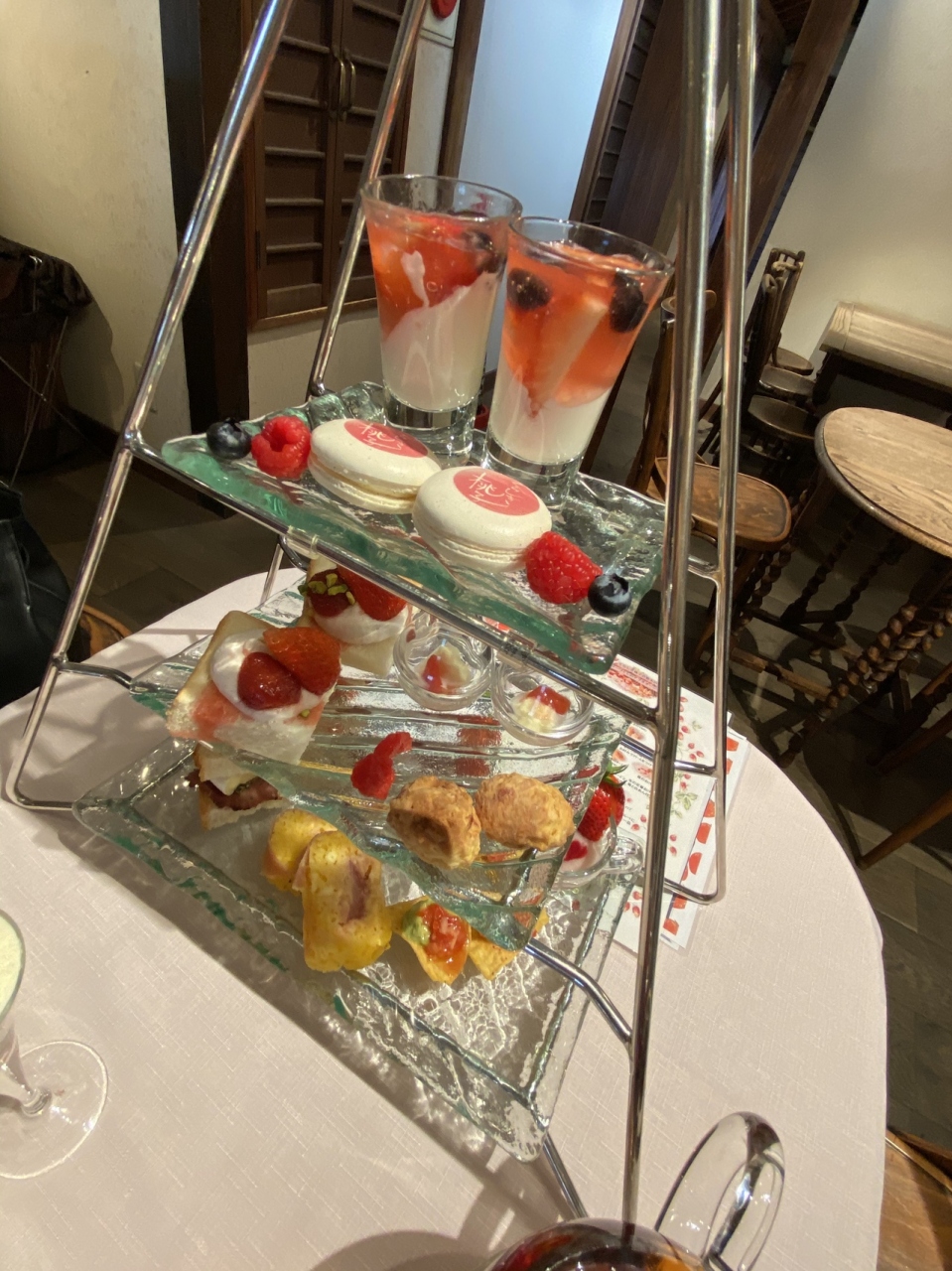 アフタヌーンティーだから基本スイーツがメインになる。まあそれをご飯がわりに食べるんだけど、どんなに美味しくても甘いのつづくと飽きるよね。