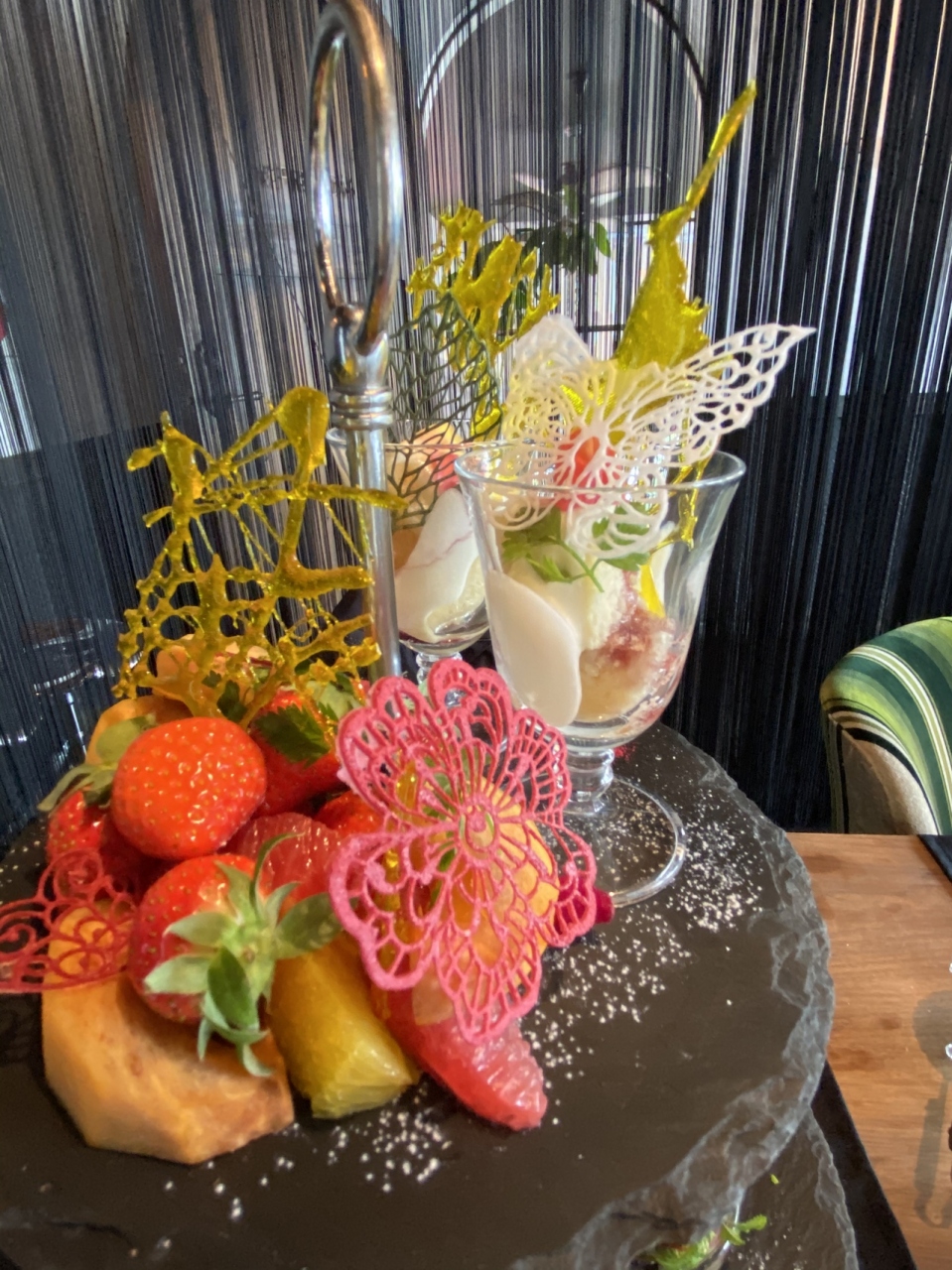 薄ーい焼き菓子でつくられた蝶とか葉っぱとかもはや芸術。味ももちろんよし。