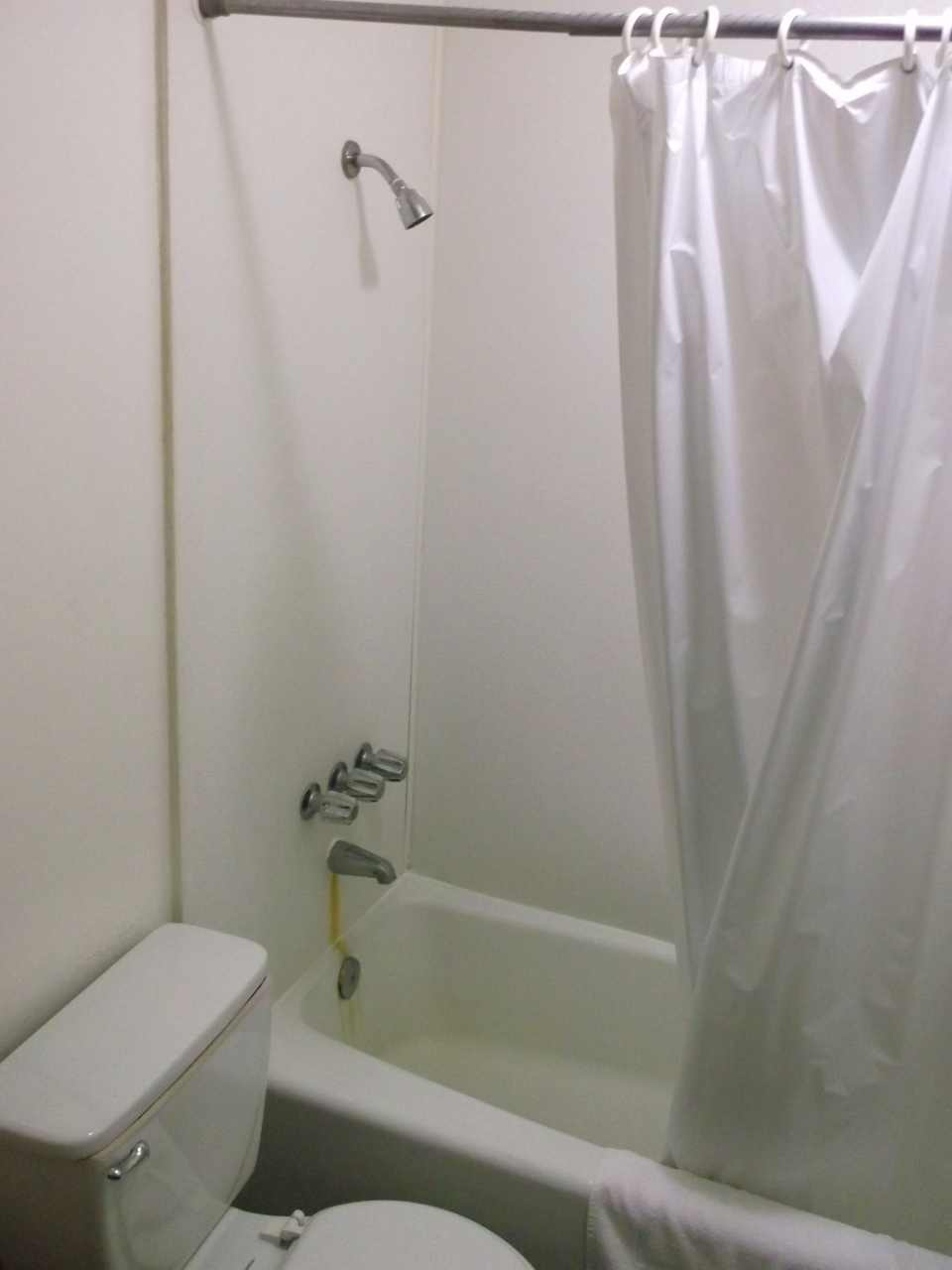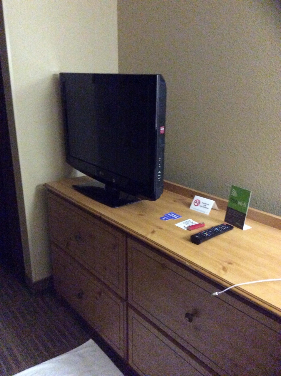 マットレスはこの手のモーテルの中では最低レベルでしょうか? 見ただけで中央のへたりが目立ち、日ごろ感じない腰痛が目覚めに訪れました。いわゆるホワイトカラーの従業員はビジネスライクの仕事ぶりで、親近感は沸きません。ブルーカラーのメキシカンの皆さんはとっても陽気で、それだけが救いです。何か問題があっても対応は遅く、『これで対応したのか?』と言った感じです。