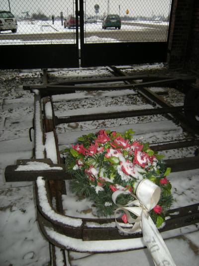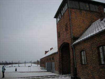 アウシュビッツの入り口。雪の積もるこの日に来る人はまばらだろうと思って...