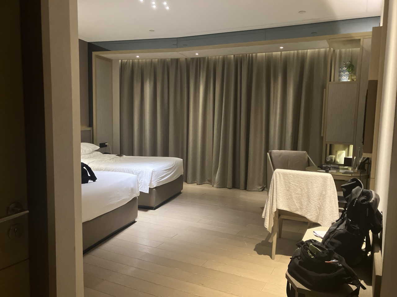 2泊利用しましたが、十分すぎる広さでとてもよかったです。冷蔵庫にはコーラ、炭酸水、スプライト、オレンジジュース、水があり無料で飲むことが出来ます。翌日清掃の際に同じものを追加してくれるので飲み物を買わなくて済みました!そのほかにも水を常温で2本用意してくれています。無料のお粥やお菓子もあり絶対にリピートしたいと思いました。