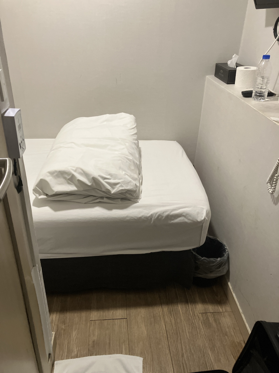 窓なしの安い部屋だったので、かなり狭かったけど、立地もよく寝るだけなら十分です!建物は古いのでカビもあり、冷蔵庫もなかったので長期間の滞在はあまりオススメしませんが、寝るだけと割り切ればいいホテルだと思います!