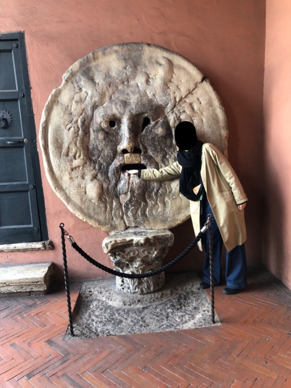 いつもは大行列の真実の口ですが、この日は5分以内に順番が回ってきました。スタッフさんが写真を撮ってくれますが、すごく短気で「ハヤクー」と急かしてきます。でも日本人とわかると「カワイイー」といってウインクしてくれるオチャメなおじさんがいますよ。