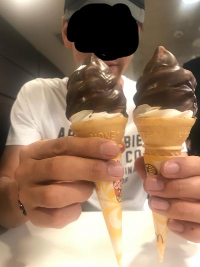 見たことのない商品フラッグを発見!ソフトにチョコ?食べてみよーということで200円で購入します。チョコソースかと思ったらチョコが固まるんです!想像以上に美味しい!しかも調べたら店舗限定商品だったようなので、発見できてよかったですー