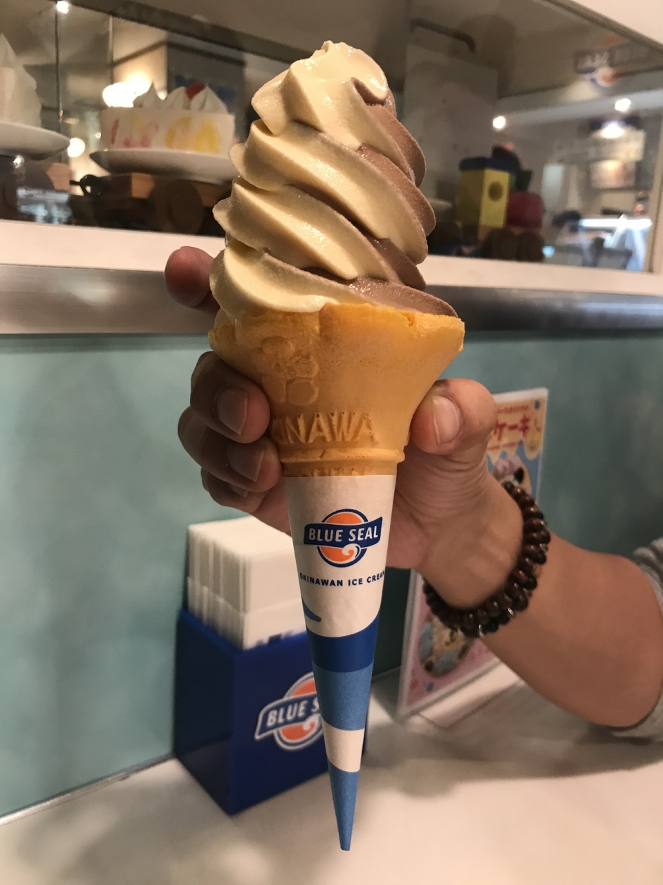 ツアー会社から無料券をもらっていたので行きました!アイスクリームが有名ですが、私はソフトクリームが好きなのでミックスソフトを食べました。柔らかくもなく、硬くもなく絶妙なかたさです。駐車場も広くて停めやすいですね!