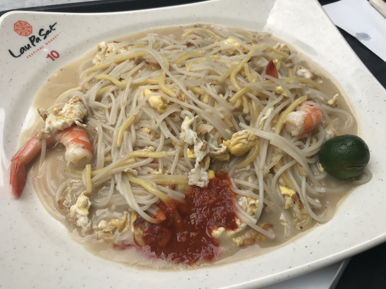 屋台っていう感じがしていいですねー。ひとが多過ぎて座席をゲットするのに時間がかかりましたが、屋外の日陰の席が空いていたのでそこで食べました。フライドホッケンミーを食べましたが、シンガポールで食べたものの中でいちばん美味しかったです!