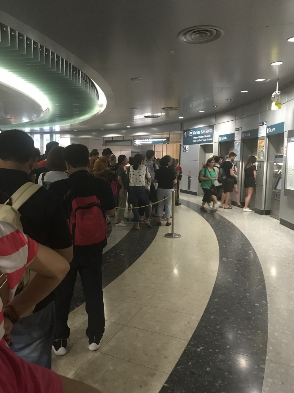 2日行きましたが、日曜日も平日も帰りのチケットを購入するのに大行列です。恐らく20分ほどはかかったと思います。マリーナベイサンズ側には券売機が4台ありそこが行列なのですが、少し歩くと別の場所にも券売機があります。並ぶのが嫌な場合は別の券売機に行きましょう。