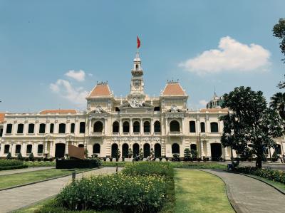 天気に恵まれてとてもキレイに見ることができました。夜はライトアップされるらしいです。目の前には有名な通りがあり、道も広くてお花や草も咲いていて癒される空間でした。ホーチミンの有名な観光スポットなので一度行ってみてください!