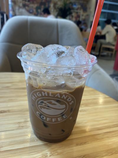 ベトナムの甘いコーヒーが飲みたい!ということでコンデンスミルクコーヒーを飲むために行きました!サイズもSMLと3つありましたがMサイズにしました。氷の量が多くてびっくりしましたが、かなり濃厚なので氷が溶けてちょうどよかったです!