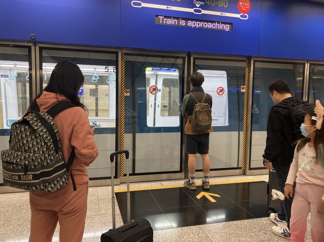 パリ行きのフライトで乗換のため香港空港を利用しました。降りてから、トランジットの看板をみて進むとシャトル乗り場に到着しました。深夜時間帯だったため、人も少なく車内は快適でした。車内上部に駅名が書いてあるのでわかりやすいです!