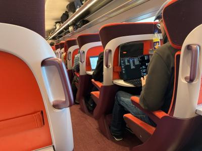 ケルンに日帰り旅行に行く際に利用しました!車内はとてもキレイでUSBやコンセントあり、テーブルも大きくて快適でした。トイレも普通にキレイだったしまた機会があれば使いたいです。復路の列車は少し古かったので、車体の当たり外れは時間帯によると思います。